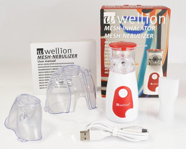 Wellion MESH-INHALÁTOR je kompaktné, prenosné zariadenie do ruky na generovanie aerosólu na použitie doma alebo na cestách. Je navrhnutý na dodávanie vhodných vodných roztokov (napr. fyziologický roztok alebo lekárom predpísané inhalačné liečivá) vo forme jemného aerosólu. Toto zariadenie je napájané internou nabíjateľnou lítiovou batériou a umožňuje flexibilné použitie bez ohľadu na miesto používania. Technológia vibračnej sieťky podporuje generovanie jemného aerosólu, ktorý dokáže počas inhalácie preniknúť do dýchacích ciest.